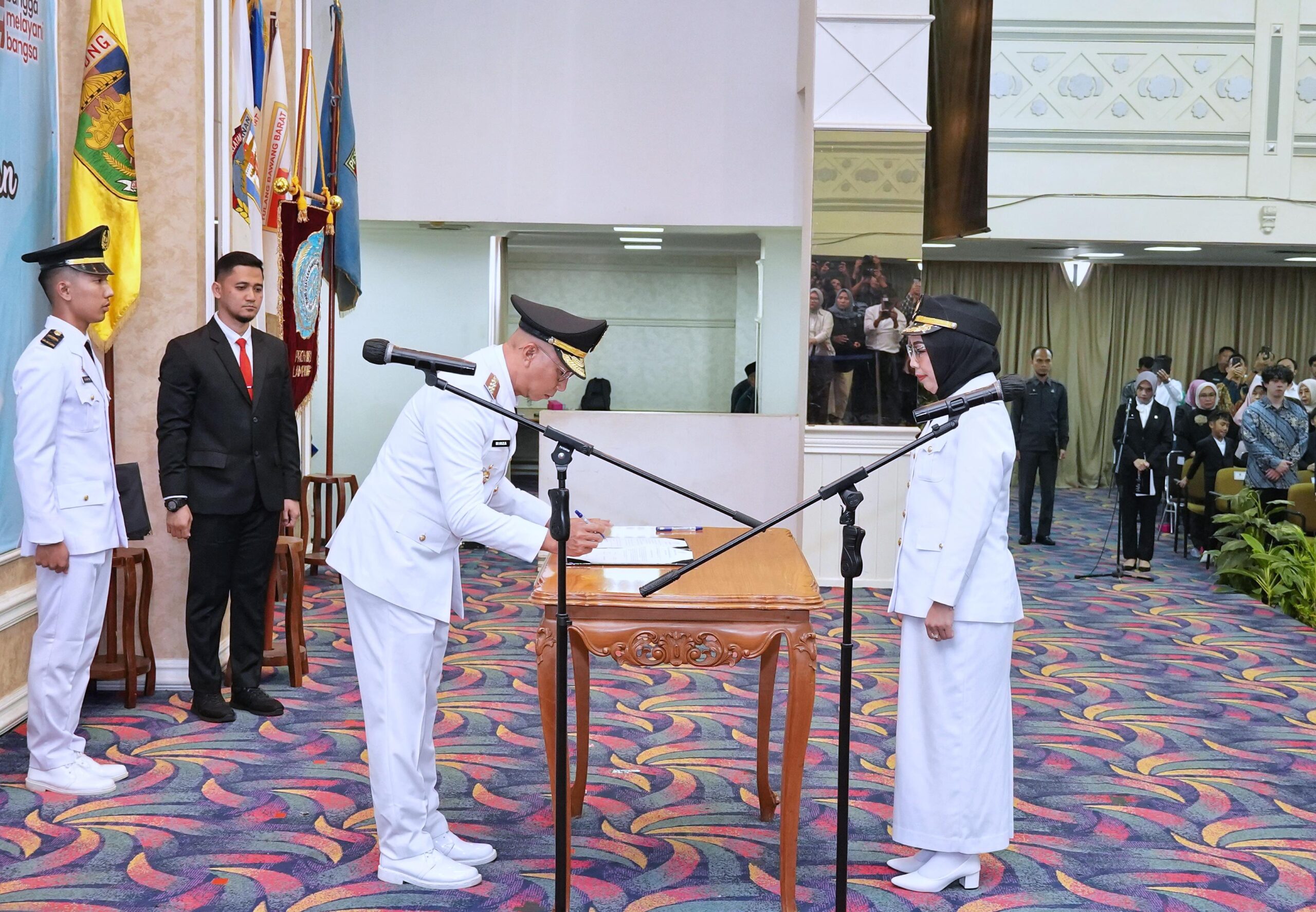 BANDARLAMPUNG (PI)—Gubernur Lampung, Rahmat Mirzani Djausal melantik dan mengambil sumpah jabatan Ayu Asalasiyah sebagai Bupati Way Kanan, Provinsi Lampung, bertempat di Balai Keratun Lantai 3, Kantor Gubernur Lampung, Selasa (10/06/2025).
