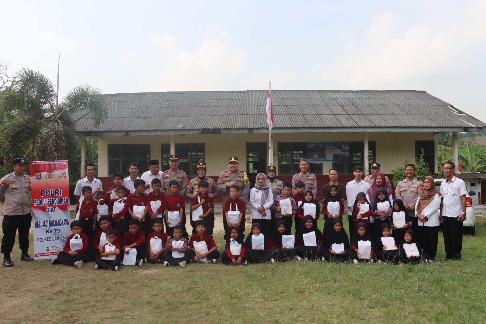 Dalam kesempatan tersebut, Polres Lampung Selatan melaksanakan kegiatan “Polri Peduli Pendidikan dan Kesehatan” untuk mendukung sektor pendidikan di daerah, serta membantu meringankan beban orang tua murid melalui pembagian paket alat tulis kepada 34 siswa di sekolah tersebut.
