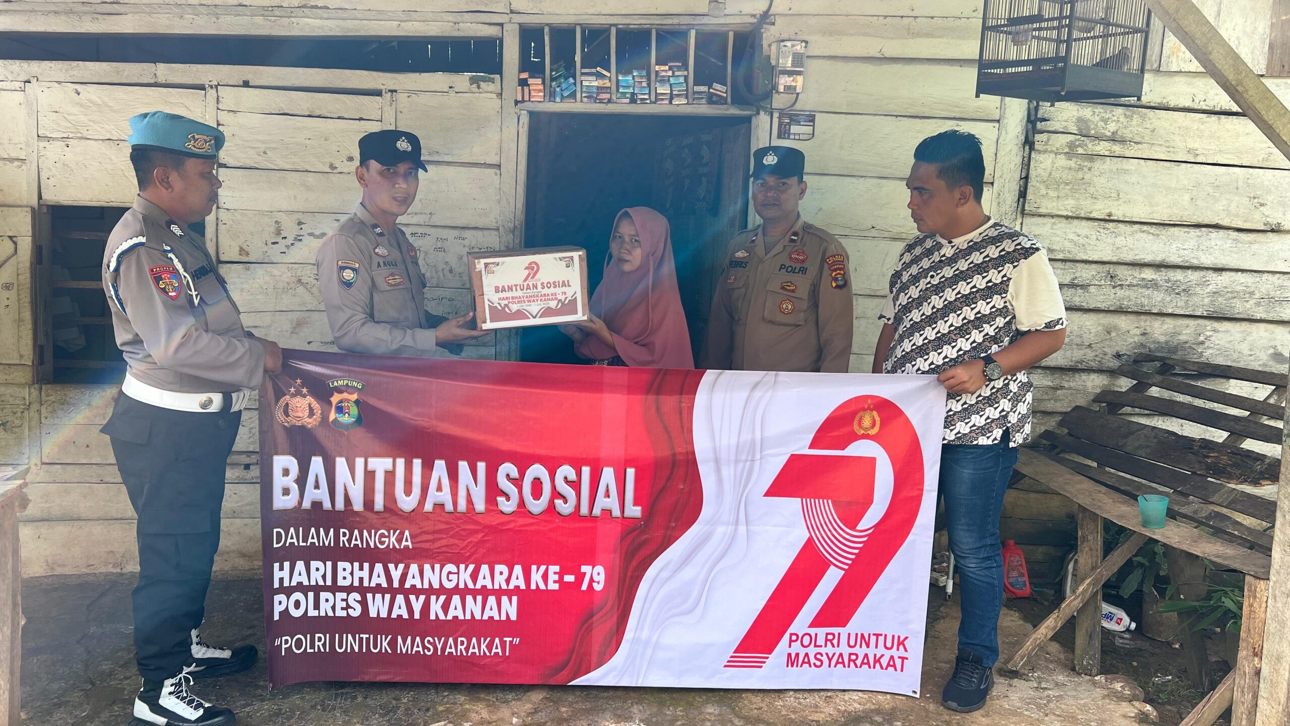 Sambangi Warga, Kapolsek Salurkan Bansos Hari Bhayangkara ke 79 di Blambangan Umpu