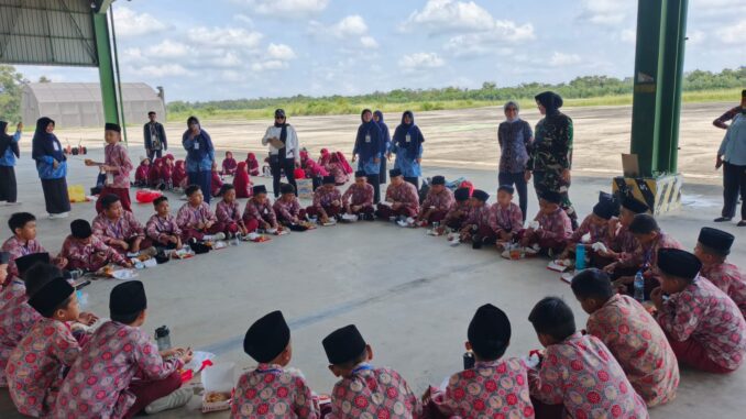 Way Kanan (Pl) – Pelaksana Tugas (Plt.) Bupati Way Kanan Ayu Asalasiyah, S.Ked bersama Siswa Siswi SD IT Bina Insani melakukan Kunjungan Berlajar ke Skadron/12 Amur Jaya Yudha Kecamatan Way Tuba, Kamis (08/05/2025). Yang disambut oleh Komandan Skadron 12/AJY, Letkol Cpn. Ferry Eko Saputra, S.I.P diwakil jajarannya, Lettu (k) Mayza, Lettu Ferel, Sertu Aditya, Serda Irsandy, Serda Alvin dan Serda Dannu.