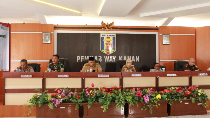 Way Kanan (Pl) – Pelaksana Tugas (Plt.) Bupati Ayu Asalasiyah, S.Ked memimpin Musyawarah Rencana Pembangunan (Musrenbang) Rencana Pembangunan Jangka Menengah Daerah (RPJMD) Kabupaten Way Kanan Tahun 2025-2029 di Ruang Buway Pemuka Pengiran Tuha, Selasa (06/05/2025). Yang dihadiri oleh Gubernur Lampung diwakili Staf Ahli Gubernur, Badan Perencanaan Pembangunan Daerah Provinsi Lampung, Anggota Forkopimda dan Penjabat (Pj) Sekretaris Daerah Kabupaten, Dr. Arie Anthony Thamrin, S.STP., M.IP., CGCAE., CGRE dan Ketua Dharma Wanita Persatuan, Medias Imroni Arie Anthony.