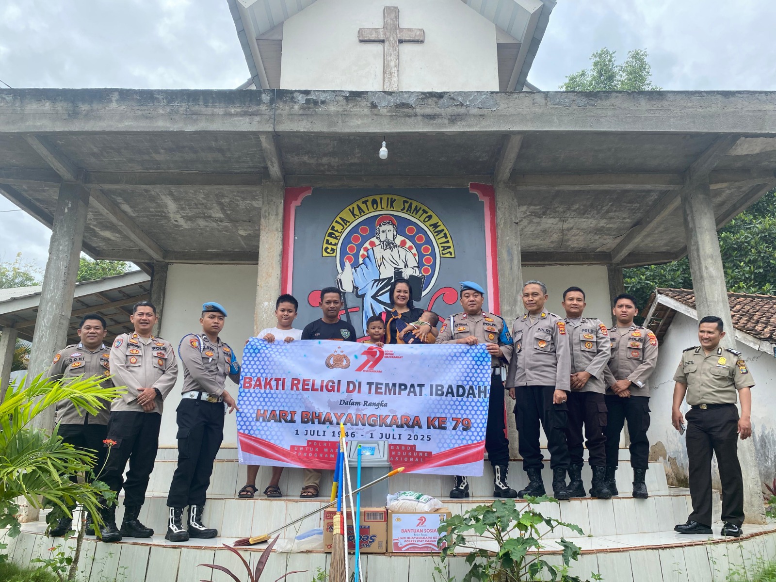 Semantara itu Aji menyampaikan dengan kegiatan bakti sosial religi dan bansos yang dilaksanakan Polres Way kanan ini, saya selaku pengurus gereja mengucapkan terima kasih dan sekaligus mengucapkan selamat Hari Bhayangkara ke -79 Tahun 2025.