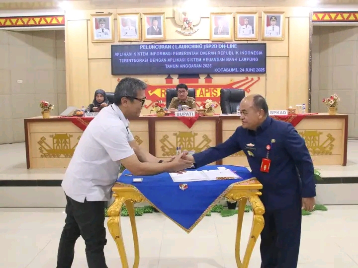 Pemerintah Kabupaten Lampung Utara secara resmi meluncurkan Sistem Perintah Pencairan Dana (SP2D) Online, yang telah terintegrasi dengan Sistem Informasi Pemerintahan Daerah Republik Indonesia (SIPD-RI) dan Aplikasi Sistem Keuangan Bank Lampung. Acara peluncuran digelar di Ruang Tapis, Sekretariat Daerah Kabupaten Lampung Utara, sebagai langkah nyata dalam mendukung pelaksanaan APBD Tahun Anggaran 2025 secara digital dan terintegrasi.