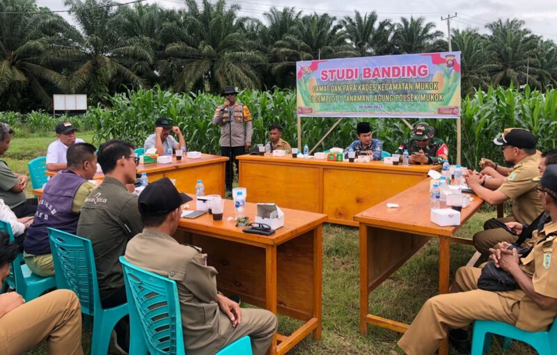Dalam upaya mendukung program ketahanan pangan nasional, Polsek Mukok Polres Sanggau menggelar kegiatan studi banding di lahan demplot jagung hibrida yang terletak di Komplek Pabrik Kelapa Sawit (PKS) PT. Citra Nusa Indah Sejahtera (CNIS), Kecamatan Mukok, Kabupaten Sanggau. Kegiatan ini berlangsung pada Senin pagi (30/6/2025) mulai pukul 09.30 WIB hingga selesai.
