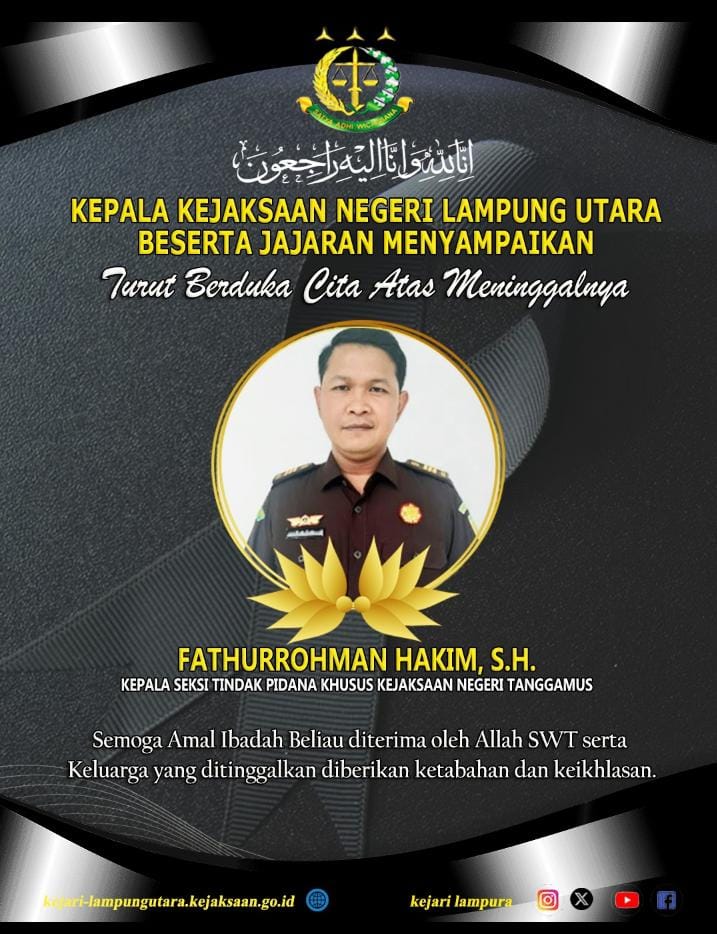 Ucapan belasungkawa ini merupakan bentuk solidaritas seluruh insan Adhyaksa Lampung Utara, sekaligus penghormatan atas jasa dan kontribusi almarhum dalam penegakan hukum dan pelayanan kepada masyarakat.