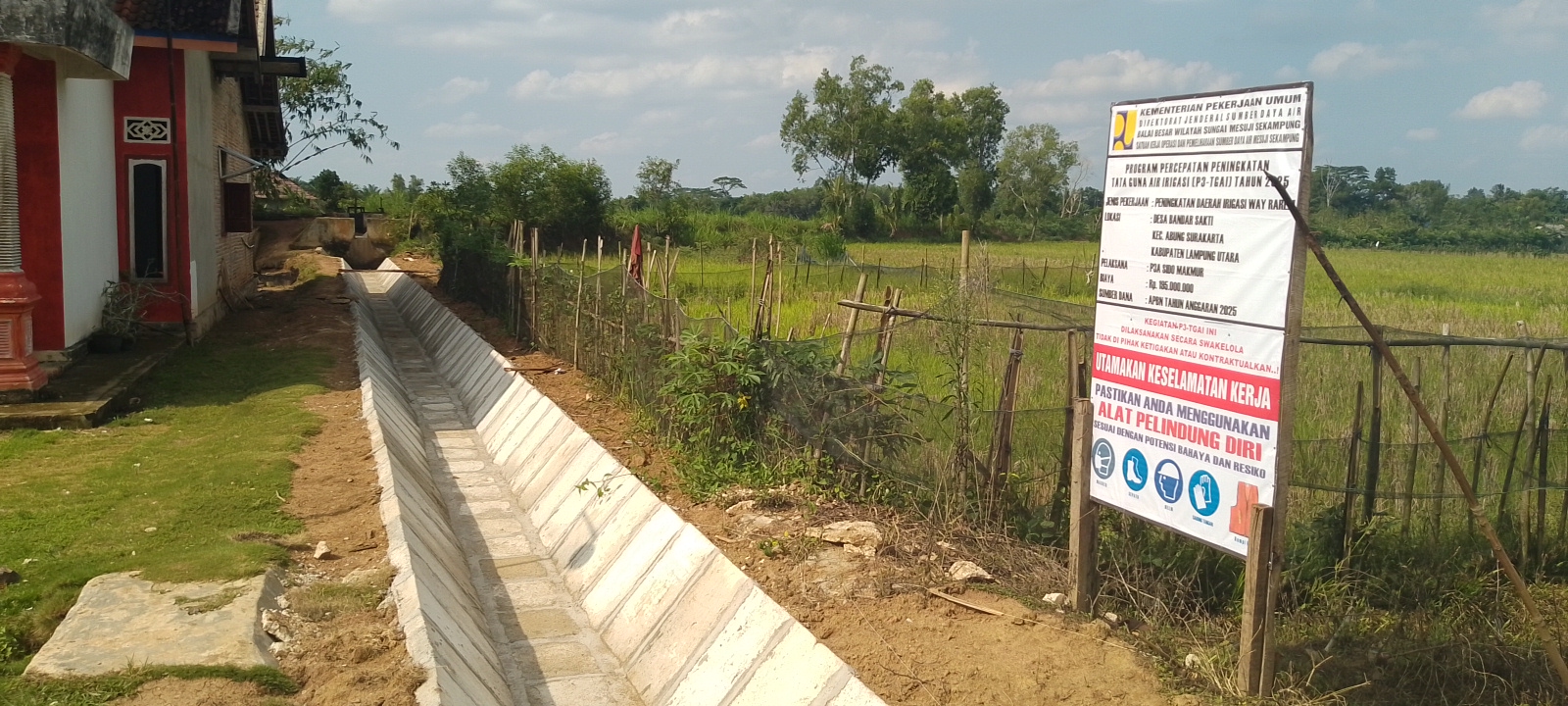 Lampung Utara (HP) — Kementrian Pekerjaan Umum Direktorat Jendral Sumber Daya Air Satuan Kerja Operasi dan Pemeliharaan Sumber daya Air Mesuji Sekampung dalam Program percepatan peningkatan Tata Guna Air Irigasi (P3-TGAI) tahun 2025. Jenis pekerjaan peningkatan jaringan irigasi Daerah Irigasi Way Rarem Lokasi di Desa Bandar Sakti, Kecamatan Abung Surakarta, Kabupaten Lampung Utara, yang bersumber dari APBN tahun anggaran 2025 biaya Rp. 195.000.000, pelaksana P3A SIDO MAKMUR diduga dikorupsi berjamaah.