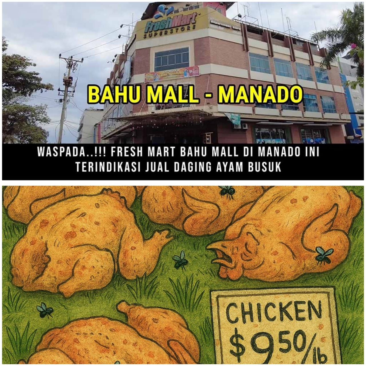 Manado (HP) – Sebuah kasus serius mengguncang dunia perdagangan pangan di Kota Manado, Sulawesi Utara, setelah Seorang warga melaporkan Toko Fresh Mart Bahu Mall atas dugaan penjualan daging ayam busuk yang menyebabkan anaknya mengalami keracunan makanan dan sempat diperiksa dirumah sakit. Laporan resmi telah diajukan pada tanggal 25 Februari 2025, nomor laporan: STTLP-B/142/II/2025/SPKT/POLDA SULAWESI UTARA, dengan tuduhan pelanggaran terhadap Pasal 8 Undang-Undang Nomor 8 tahun 1999 tentang Perlindungan Konsumen.