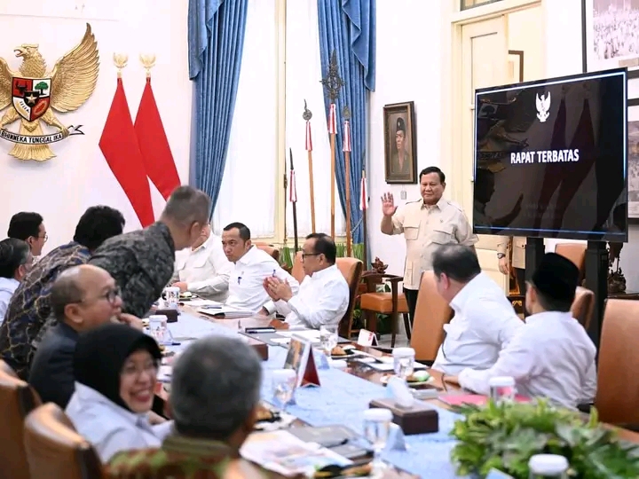 Jakarta (HP) Presiden Prabowo Subianto menggelar rapat terbatas bersama sejumlah menteri Kabinet Merah Putih di Istana Merdeka, Jakarta, Rabu (05/11/2025). Rapat tersebut membahas langkah-langkah strategis pemerintah dalam upaya mempercepat penanggulangan kemiskinan melalui dua pendekatan utama, yakni pendidikan dan pemberdayaan masyarakat.
