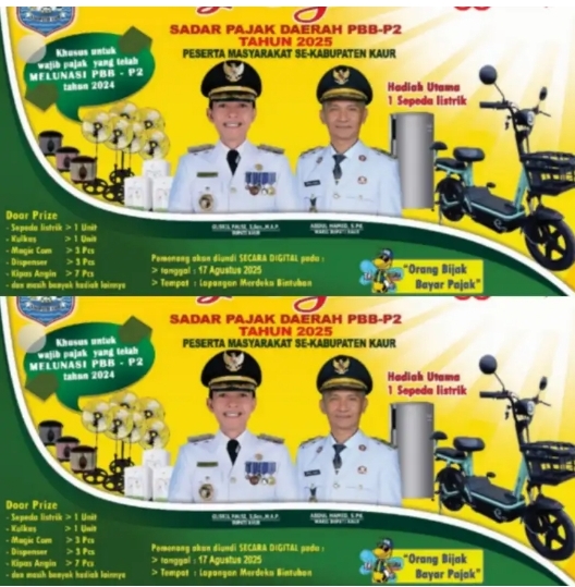 Mari bersama kita sukseskan acara ini sebagai bentuk komitmen dalam membangun Kabupaten Kaur yang lebih maju, sejahtera, dan mandiri melalui kepatuhan pajak daerah. Ingat, Orang Bijak Bayar Pajak!