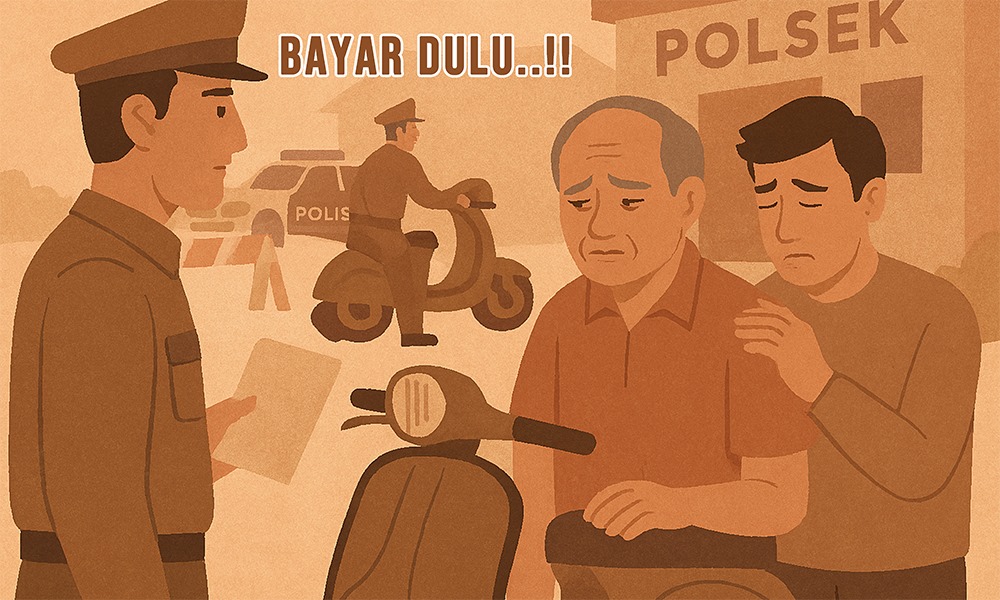 Hari itu juga, ayah bolak-balik ke rumah, membawa fotokopi STNK dan BPKB asli. Namun semua usaha itu tak membuahkan hasil. Petugas tetap berkata singkat: “Kalau mau ambil motor, tebus dulu.” Tidak ada penjelasan resmi, tidak ada surat tertulis, hanya tekanan.