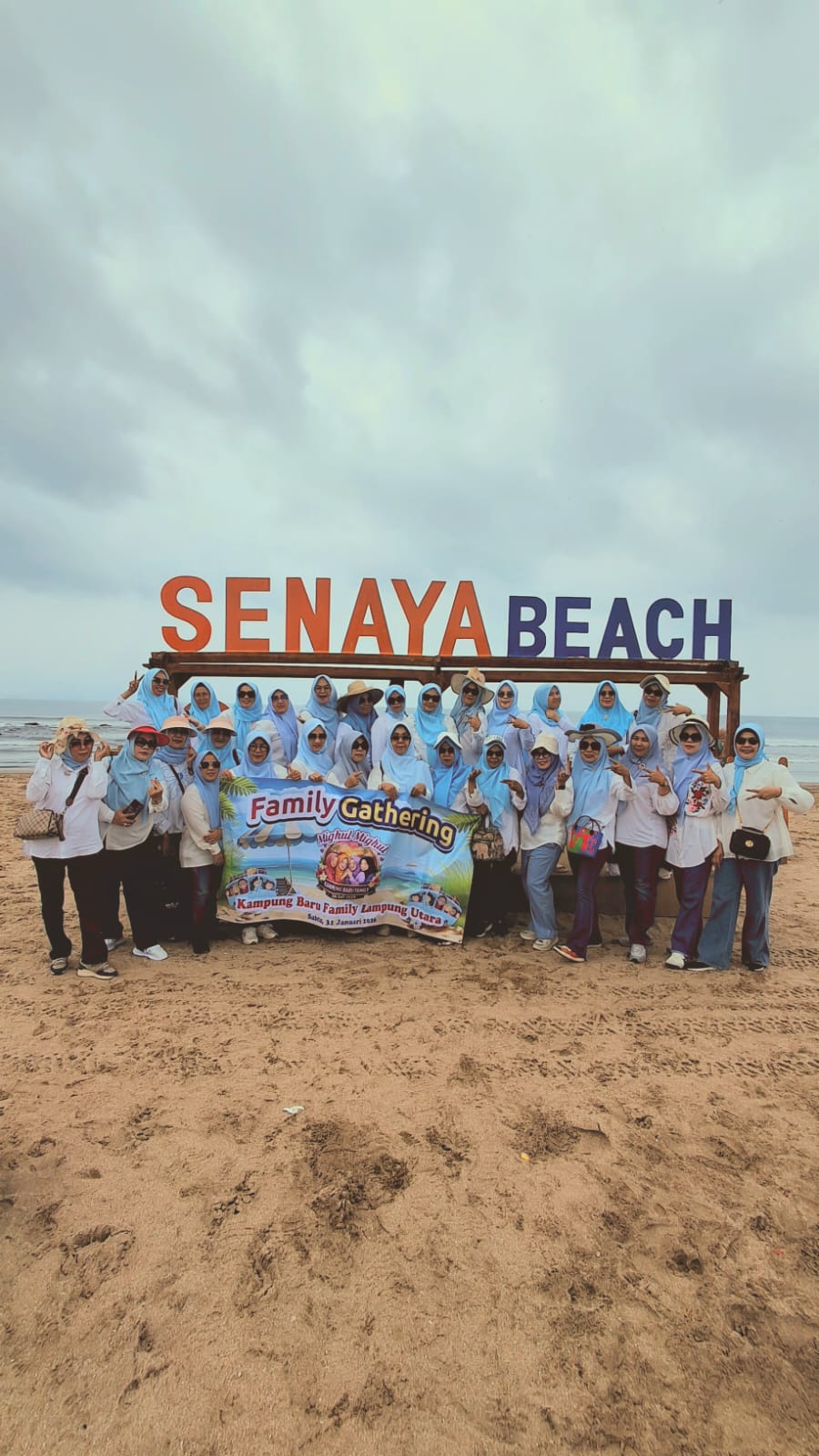 Kalianda (HP) ,31-Januari-2026. Komunitas Gathering Family Kampung Baru, Kotabumi, Lampung Utara, menggelar kegiatan wisata bersama ke objek wisata Senaya Beach, Kalianda. Kegiatan ini diikuti oleh anggota yang terdiri dari ibu-ibu (mighul-mighul) serta keluarga Kampung Baru dengan jumlah keseluruhan sebanyak 39 orang.